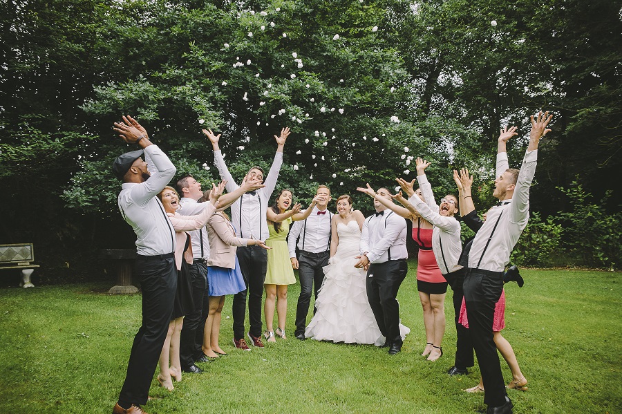 Enfin, le retour à la réalité a été difficile et j’ai alors cherché comment « aller mieux » ! Organiser le voyage de noces pour penser à autre chose ? Impossible car il était déjà tout prêt, nous avions créé une liste de mariage où chaque invité pouvait nous offrir une étape, une activité, un hôtel de notre voyage à Bali. En septembre 2015, presque 4 mois après le mariage, le voyage de noce étant terminé, le wedding-blues persiste !  Un Trash The Dress !? Je ne souhaite pas remplir ma robe de peinture, je suis très attachée aux souvenirs et je souhaite qu’elle reste intacte, alors pas pour moi. Mais l’idée de remettre LA robe pour de nouveaux souvenirs me plaît bien. Une idée mûrit alors : organiser un week-end pour nos noces de coton avec témoins, demoiselles d’honneur et amis proches. Et comme j’ai un mari et des amis extraordinaires et bien tout le monde est emballé ! Me voici alors partie dans une nouvelle organisation : recherche d’une date, d’un gîte pour un week-end pouvant accueillir 13 personnes,  de la déco… et  d’un photographe ! L’idée du week-end sera de refaire une séance photo tous ensemble : les filles habillées comme le Jour J et les garçons « bretelles + nœud papillon »! La date est fixée au week-end de mon anniversaire et nous partirons dans un grand gîte en Normandie.