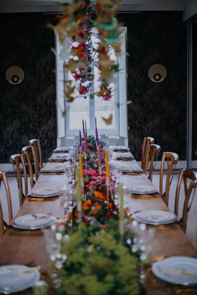 Pour une décoration colorful comme celle présentée lors de ce shooting, comptez un budget d’environ 3500 € pour une cinquantaine d’invités.