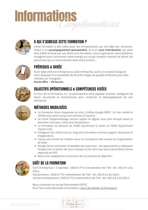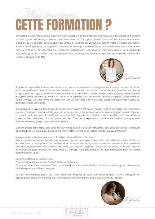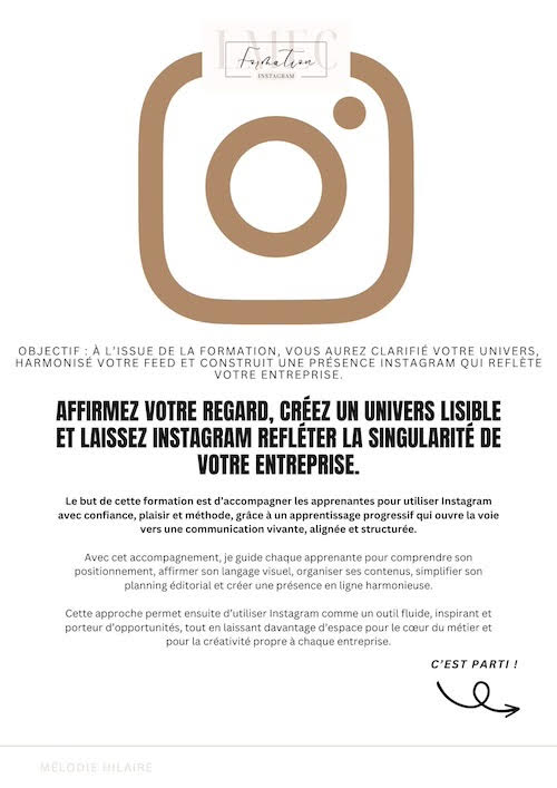 Signature, la formation INSTAGRAM, c’est un accompagnement de 5 jours, en petit groupe, avec retours individualisés et mise en pratique concrète.
