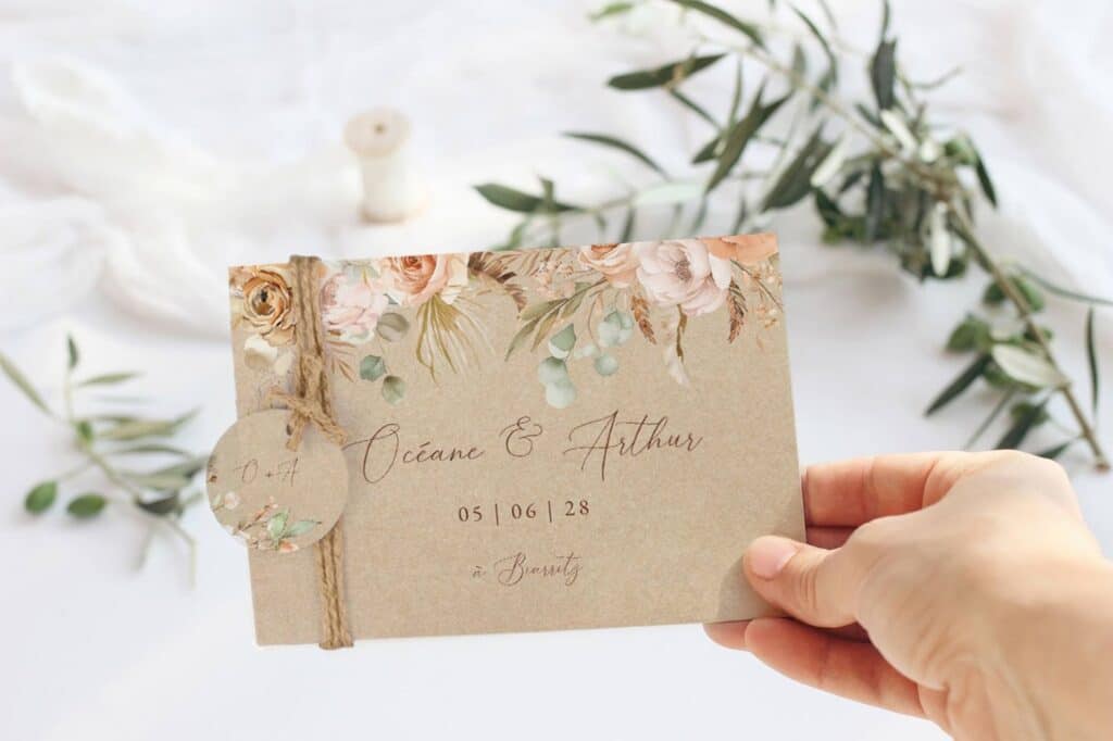 Certains couples choisissent par exemple d’ajouter plusieurs petites cartes pour détailler la cérémonie, le lieu de réception ou les informations pratiques pour la famille et les amis.